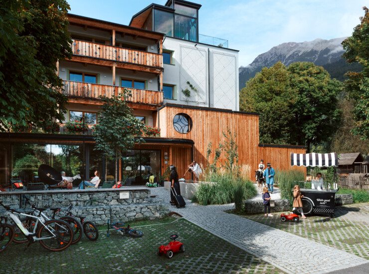 Dazu gehören kulinarische Fixpunkte über den Tag, Wasserbar und Abendgetränke, Kinderclub, Familienprogramm und ein offenes Haus mit Öko-Hallenbad, Spielstadel, Tieren und vielen Möglichkeiten drinnen wie draußen.